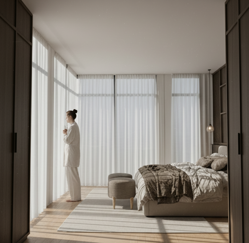 Bütün bu yaklaşımlarla, mekânın yalnızca görsel olarak etkileyici değil; aynı zamanda sakinleri için dengeli, davetkâr ve işlevsel bir yaşam alanı olmasını koymayı hedefledik.